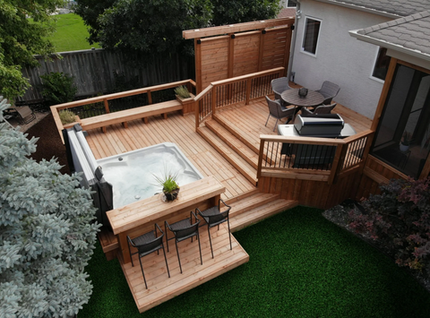 By positioning your hot tub directly beneath the deck, you can ensure maximum privacy from above, effectively preventing any neighboring multi-story homes from getting a glimpse of your hot tub oasis.
