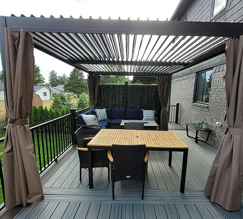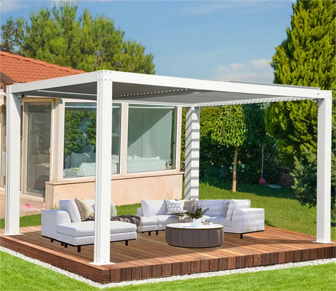 In summary, a luxury pergola kit with manual operation allows users to personalize their outdoor experience by manually adjusting the roof's louvers. While it offers a more traditional and affordable option, it does require more effort compared to motorized or remote-controlled alternatives.