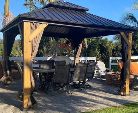Gazebo total weight: 409 lbs (10x13 ft), 502 lbs (12x16ft), 640 lbs (12x20ft)